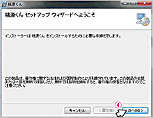 - 「桃源くん セットアップウィザードへようこそ」の画面が表示されたら、順次[次へ]をクリックし、インストールを進めます。