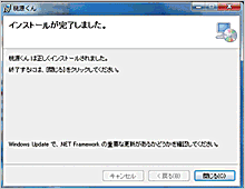 - 「インストールが完了しました」の画面が表示されたら準備完了です。[閉じる]をクリックしてデスクトップへ移動すると、画面右下に桃源くんマークが表示されます。
